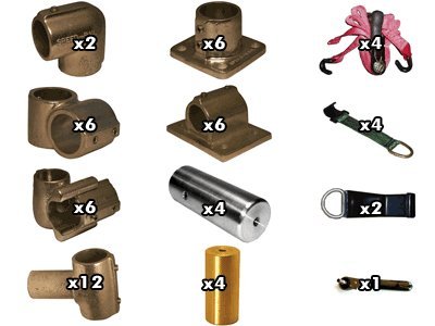 #This Speed Rail Starter Kit is a great way to start your speed rail parts collection. It has a good amount of the basics you will need to do small 1 1/4" speed rail rigging and it will be a good base to build on as you start building more elaborate rigs. Includes: two 1 1/4" Elbows, six 1 1/4" Short Barrel Crosses, six 1 1/4" Split Crosses, twelve 1 1/4" Swivels, six 1 1/4" Flange Bases, six 1 1/4" Horizontal Flanges, four Pipe Fitting Starters for 1 1/4"
