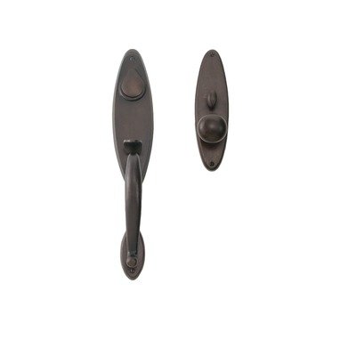 Entry Set Front Door Handle with McKinley Round Knob Backset: 2.5", Handing: Right Handing?EN-1509-H11-RH-2 1/2"-1 3/4"-BP Backset: 2.5", Handing: Right Handing Features: -Door handle.-Fits 1.75" door width. Color/Finish: -Bronze patina living finish. Dimensions: -Overall dimensions: 11'' H x 2.5'' W x 2.38'' D. Collection: -Entry Set collection.