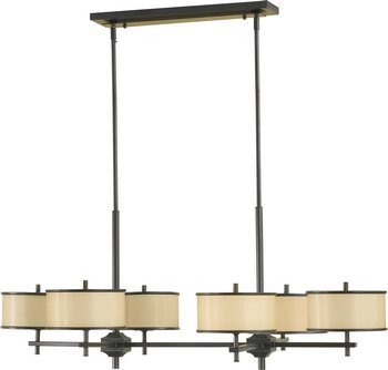 #F2345-6DBZ Finish: Dark Bronze Shown in Brushed Steel Features: -Chandelier.-Ceiling mount.-Silver organza hardback shade with fabric or bronze oraganza fabric on hard back shade.-UL listed for dry location. Options: -Available in brushed steel or dark bronze finish. Construction: -Steel construction. Specifications: -120 Volts.-Accommodates (6)75W G-9 halogen base bulb (not included). Dimensions: -Canopy dimensions: 19.5'' H x 4.5'' D.-Shade dimensions: 4'' H x 7.75'' W x 7.75'' D.-Overall dimensions: 73'' H x 26'' W. Collection: -Casual Luxury collection.